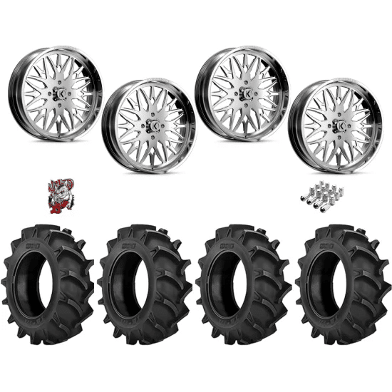 Dominate the toughest terrains with the BKT TR-171 42-9.5-24 tires mounted on KG1 Forged KU014 Trident Polished wheels. This powerful combination is designed for those who demand unparalleled performance, durability, and style from their off-road vehicle. The BKT TR-171 tires are engineered for extreme traction and durability, perfect for tackling the most challenging conditions. With a deep lug design. These tires offer exceptional grip and stability on soft and muddy surfaces. While ensuring maximum traction and control. The robust construction enhances puncture resistance and longevity. Therefore making these tires ideal for heavy-duty off-road applications. Whether you’re plowing through deep mud or navigating rugged trails. The BKT TR-171 tires deliver consistent and reliable performance.