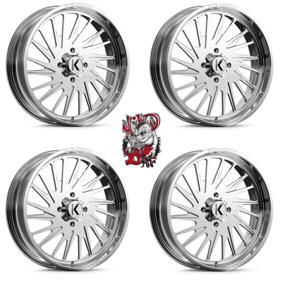 Elevate your off-road vehicle with the KG1 Forged KU038 Javelin Polished 22×7 Wheel, available as a full set. These premium wheels are expertly crafted using advanced forging techniques for exceptional strength and lightweight construction. Therefore ensuring durability and resilience on challenging terrains. The KU038 Javelin features an intricate multi-spoke design that adds an elegant and sophisticated touch to your UTV or ATV.