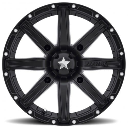 The M33 Clutch is the perfect blend of symmetry and offroad performance. Clean, eight spoke offroad inspired design in satin black with milled accents on faux beadlock lip. Available in debris shedding satin black paint, the Clutch takes any ATV or UTV from stock to hot. Our satin black paint offers the correct balance between gloss and matte finishes to make clean up a snap. Available in a variety of fitments for all makes and models of ATVs and UTVs. (Depending on the machine your stock lug nuts may not work with this wheel. They MAY require a different style lug nut that we offer).