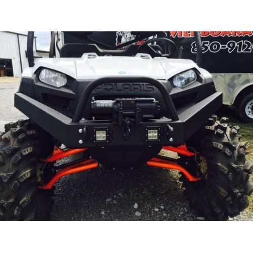 The Wild Boar Front Bumper replaces your stock front bumper allowing you to mount up to a 4500 lb winch on top. Our Bumper can hold the bigger winches because we put supports inside the bumper. See Features Below: