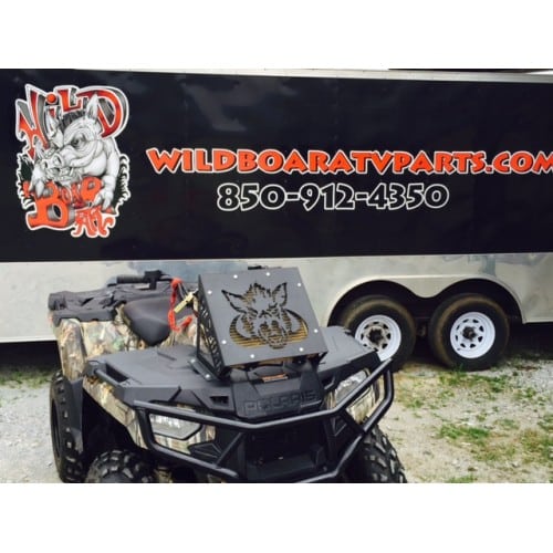 The solution to this problem is moving your radiator up onto the front rack to get it out of the mud that you’re playing in. Everyone has seen this done. Your buddy shows up with his radiator high and dry and free of mud and never has any trouble with his bike overheating, but it looks like a job done by ‘Shade Tree Customs’ of Poorville, USA. Not these ATV radiator relocation kits… Just take a look at them! They are all Steel construction complete with all the necessary mounting hardware. Laser cut and powder coated, this will not only be the most solid, complete kit you’ve ever seen, but it will also be the best looking. So keep the bike running cool all weekend long and purchase a Wild Boar radiator relocation kit.